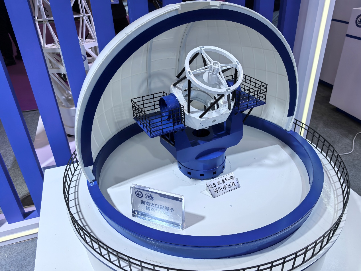 展會(huì)現(xiàn)場,中科天儀首次展出了2.5米多終端通用望遠(yuǎn)鏡模型、1米SLR望遠(yuǎn)鏡模型、科學(xué)應(yīng)用系統(tǒng)重大基礎(chǔ)設(shè)施模型,同時(shí)帶來了各種成熟光學(xué)鏡面加工產(chǎn)品。其中,2.5米多終端通用望遠(yuǎn)鏡是我國最大口徑同軸收發(fā)激光測距望遠(yuǎn)鏡。展品充分體現(xiàn)了公司在技術(shù)融合與協(xié)同創(chuàng)新方面的實(shí)力,也彰顯了其在光學(xué)設(shè)備研發(fā)上的深厚積累。展臺(tái)吸引了眾多科研院所、高校及產(chǎn)業(yè)鏈相關(guān)企業(yè)的專業(yè)觀眾駐足交流,現(xiàn)場反響熱烈,關(guān)注度持續(xù)高漲。